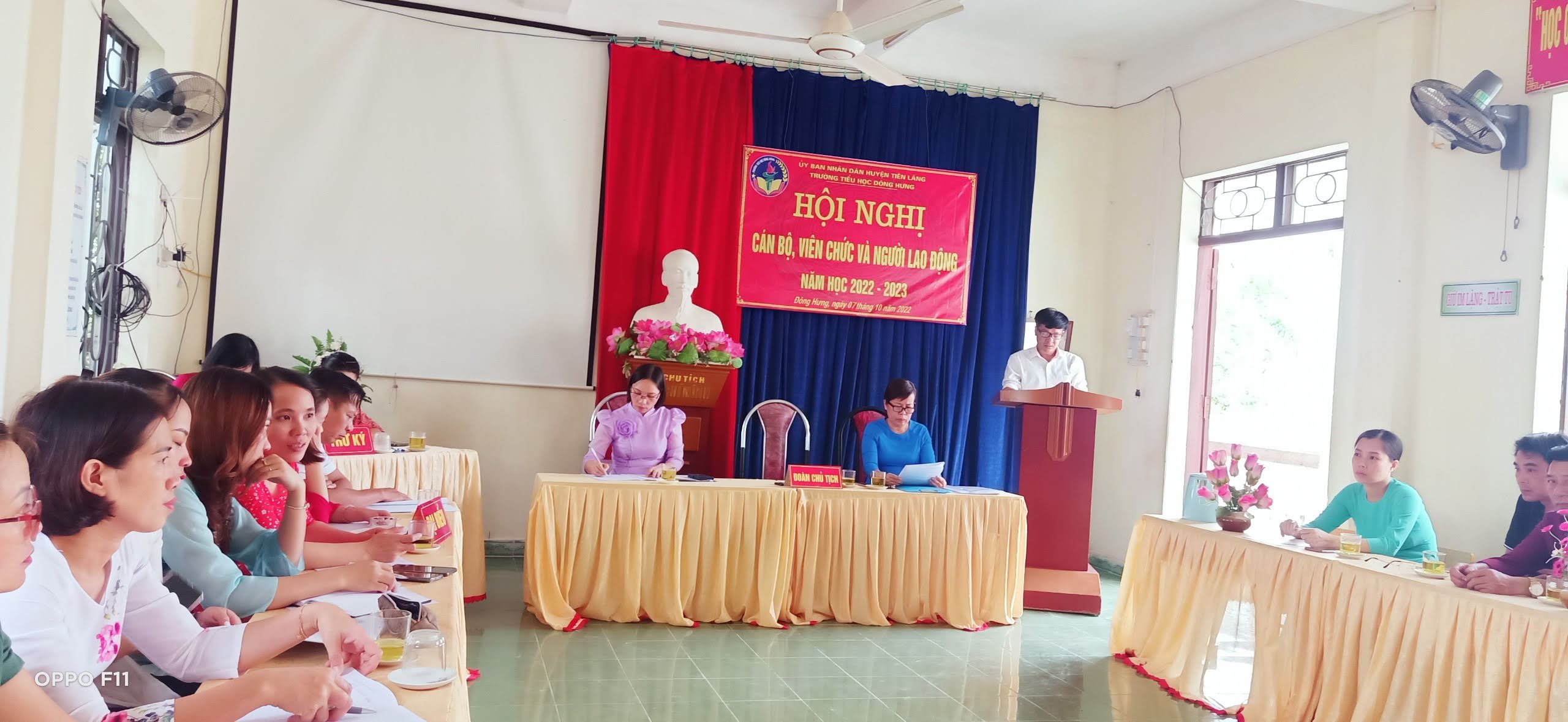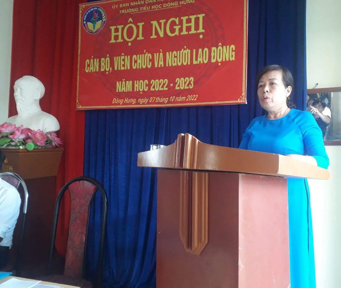 Thực hiện Hướng dẫn 21/UBND-LĐLĐ ngày 12 tháng 9 năm 2022 của Ủy ban nhân dân – LĐLĐ huyện Tiên Lãng về việc tổ chức Hội nghị Cán bộ, viên chức và người lao động trong các trường học và cơ quan giáo dục năm học 2022-2023. Chiều ngày 07 tháng 10 năm 2022, được sự đồng ý của Phòng GD&ĐT và LĐLĐ huyện Tiên Lãng, trường Tiểu học Đông Hưng long trọng tổ chức Hội nghị cán bộ, viên chức và người lao động , nhằm đánh giá kết quả thực hiện nhiệm vụ năm học 2021-2022 và phướng hướng, nhiệm vụ, giải pháp, biện pháp các chỉ tiêu của năm học 2022-2023.