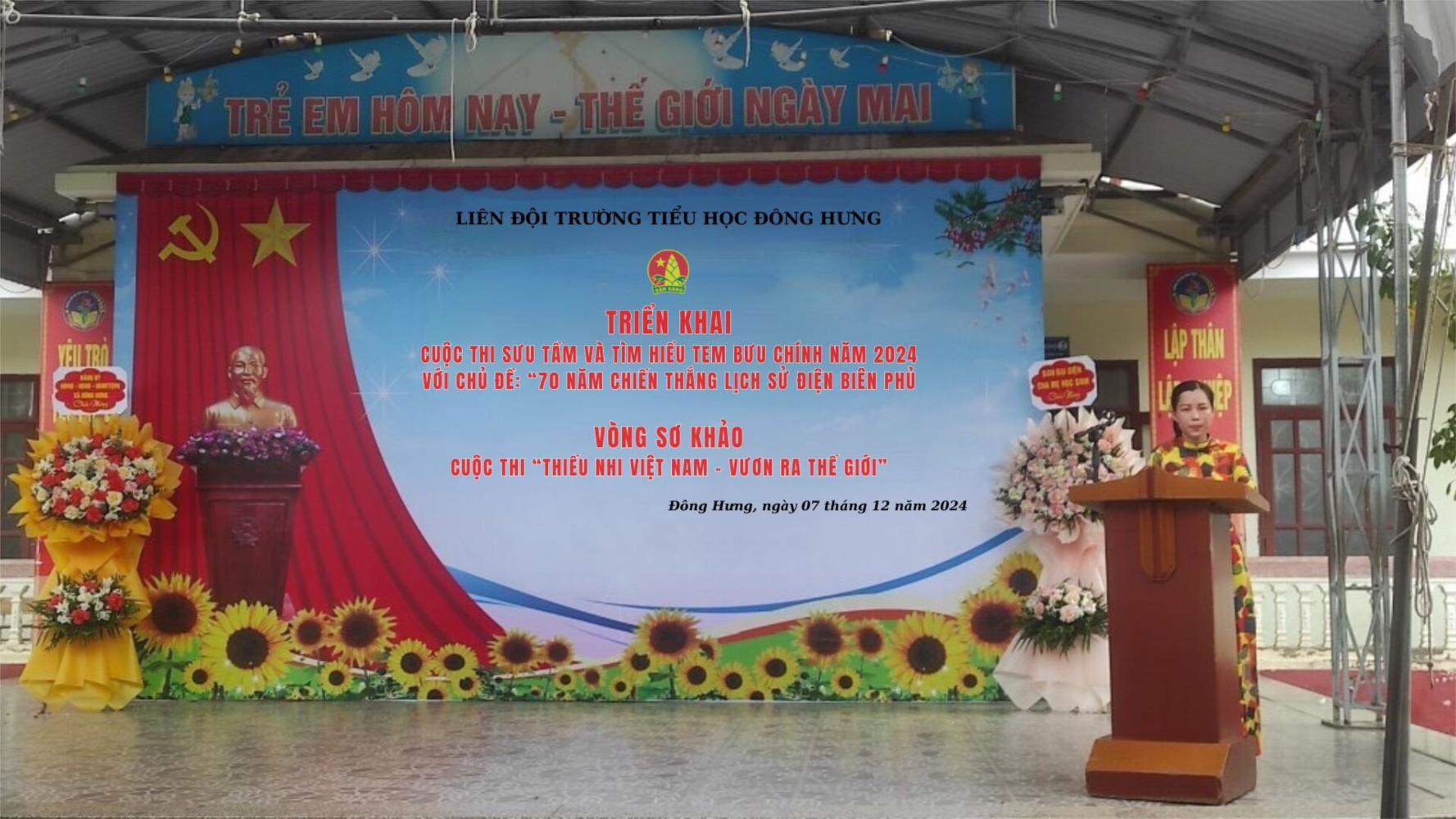 🌞🌻Thực hiện Chương trình Công tác Đội và Phong trào thiếu nhi năm học 2023 – 2024, Liên đội trường TH Đông Hưng tổ chức triển khai sưu tầm và tìm hiểu tem bưu chính năm 2024 với chủ đề “ 70 năm chiến thắng Điện Biên Phủ”; vòng sơ khảo "Thiếu nhi Việt Nam - Vươn ra thế giới" thông qua cuộc thi thuyết trình Tiếng Anh cấp cơ sở, nhằm tạo điều kiện giúp học sinh chủ động nâng cao hiểu biết xã hội, tìm hiểu nét đẹp văn hóa truyền thống của dân tộc, các di tích lịch sử, danh lam thắng cảnh của quê hương, đất nước, từ đó, hình thành và nuôi dưỡng niềm tự hào dân tộc, góp phần quảng bá hình ảnh Việt Nam đến bạn bè quốc tế.
